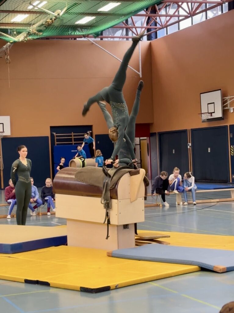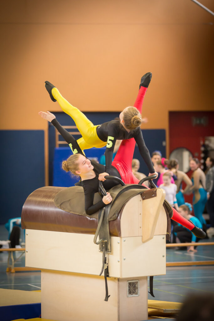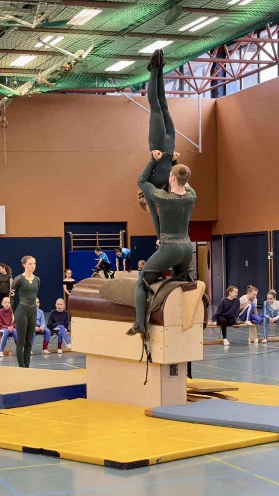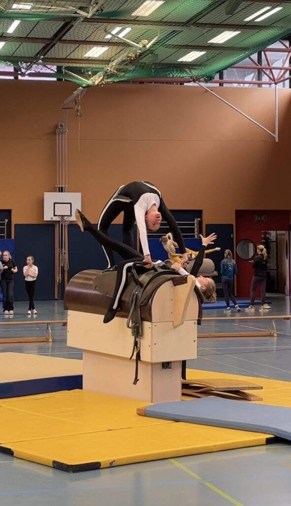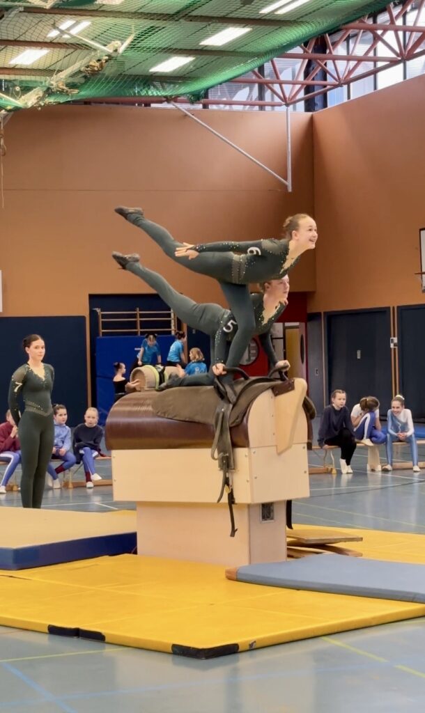 Im Anschluss gingen Hanna und Mayla, ebenfalls aus dem A-Team, zum ersten Mal als Junior-Doppel an den Start. Die Aufregung war auch hier deutlich zu spüren. Dadurch wirkte die Kür stellenweise etwas hektisch, dennoch zeigten die beiden eine gute Leistung und wurden mit einer Wertnote von 6,103 und dem 2. Platz in der zweiten Abteilung belohnt.