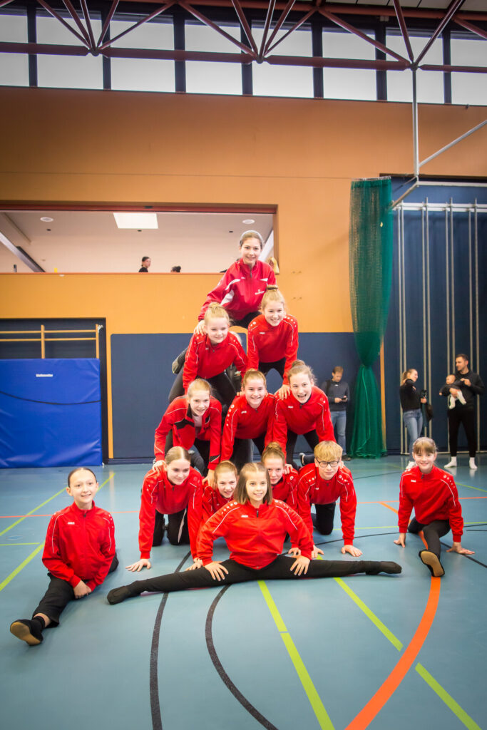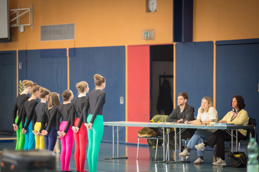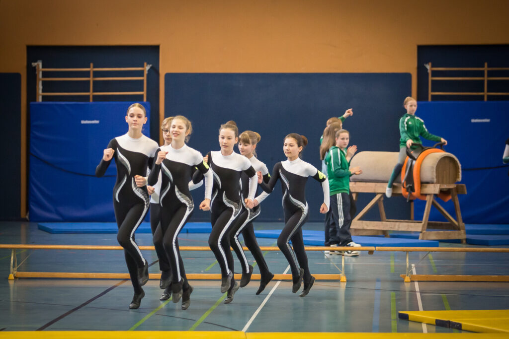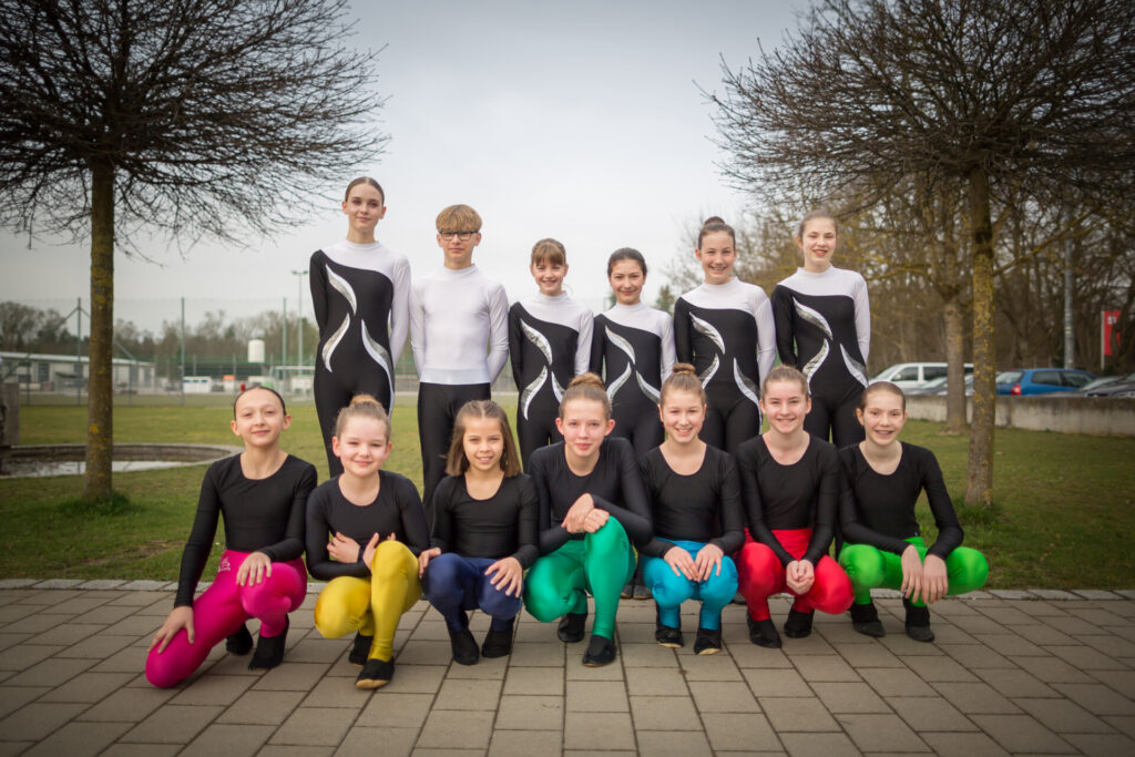Bereits in aller Früh startete am Samstag unsere dritte Turniermannschaft. Aufgeteilt in zwei Startteams traten sie zunächst im Pflicht-Wettbewerb und anschließend im Kür-Wettbewerb der Leistungsklasse A an. Beide Gruppen zeigten eine solide Pflicht und wurden dafür belohnt: Mit einer Wertnote von 4,793 erreichte das erste Dschungel-Team den 3. Platz in der zweiten Abteilung, während das NewYork-Team mit 5,132 sogar den 1. Platz in der dritten Abteilung belegte.
