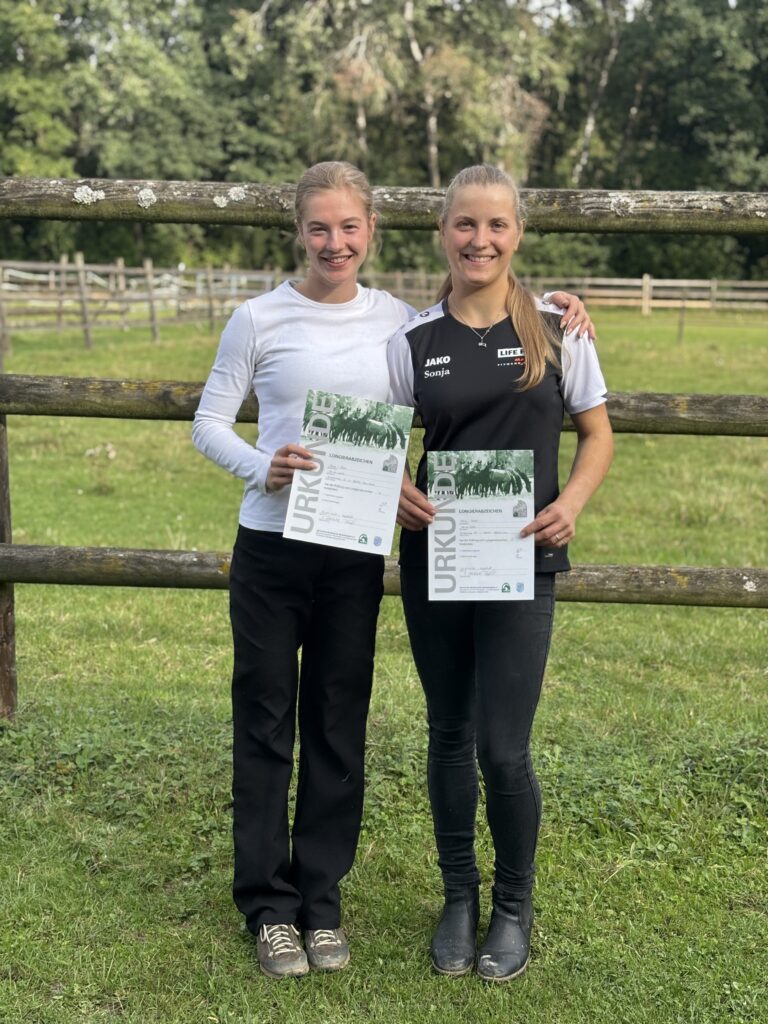 Den Anfang machten Sonja, die mit Momo ihr Können an der Longe unter Beweis stellte, und nun stolze Besitzerin ihres ersten Longierabzeichen (LA 5) ist. Julia legte gemeinsam mit Cuba sehr erfolgreich bereits ihr zweites Longierabzeichen, das LA 4 ab.
